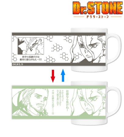温度に反応する特殊なインクを使用しており、マグカップに温かい飲み物を入れると、千空の名言「科学の基礎だけは絶対に揺らがねえ!」のシーンから百夜が千空へ言葉を送るシーンへと変化します。