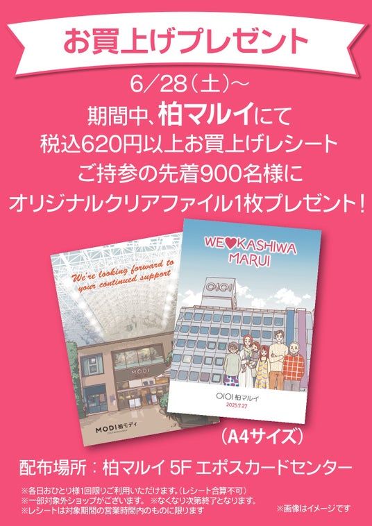 6月28日(土)からは、「柏マルイ・柏モディ」のイラストをモチーフにデザインしたクリアファイルを、お買上げプレゼントの第3弾としてご用意しています。