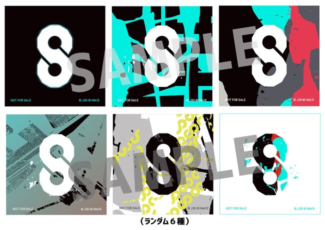 また、商品仕様も公開され、「8」のロゴを型抜いたスリーブケース付きの特殊パッケージとなっています。メーカー特典のロゴステッカーは、先行配信でのジャケットデザインを使用し、ランダムで6種類が用意されています。