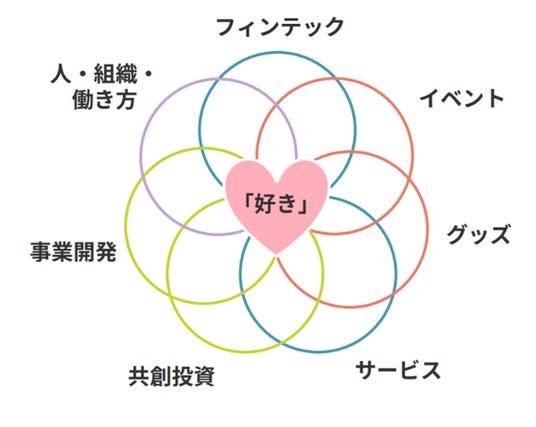 当社グループは、インパクト(社会課題解決)と利益の両立をめざし、機能や価格ではなく、一人ひとりの感情や価値観が原動力となって動く新しい経済のあり方として【「好き」が駆動する経済】という新たな経済のビジョンを描きました。その具現化に向け、フィンテックを中心に、イベント、グッズ、サービス、共創投資、事業開発、そして人・組織・働き方など、すべてを通じた「好き」を応援するビジネスを推進しております。