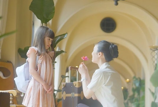 このたび、金賞を受賞した本動画は、2024年に迎えたホテル日航アリビラの開業30周年を記念して制作されたものです。ホテルが位置する読谷村出身の歌手・Kiroro 玉城千春さんに作詞・作曲を依頼したホテルオリジナルソング『おかえり』と呼応するようなストーリー構成となっており、自然豊かな読谷村にたたずむ当ホテルが「心が帰る場所」であることを表現しています。約4分30秒の動画は、幼い女の子が両親と初めてホテルを訪れ滞在を楽しむ様子からはじまり、その思い出を胸に成長した女性が、自身の結婚式を挙げるために三世代でホテルを再訪する様子を描いています。父親が娘と孫を見守る温かな眼差しなど、世代を超えて紡がれる家族の物語が丁寧に描写され、見る人の心を打つ内容となっています。