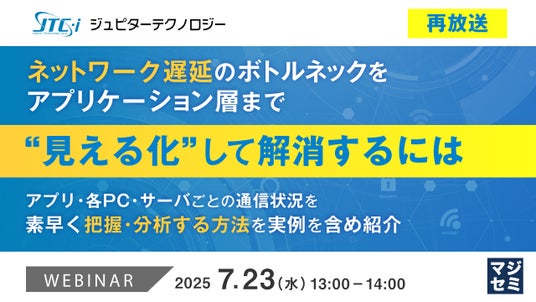 マジセミ株式会社は「【再放送】ネットワーク遅延のボトルネックをアプリケーション層まで“見える化”して解消するには」というテーマのウェビナーを開催します。
