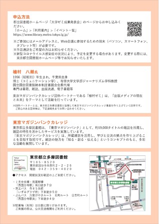 東京都立図書館ホームページ「大学ゼミ成果発表会」のページからお申し込みください。