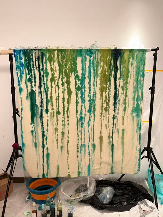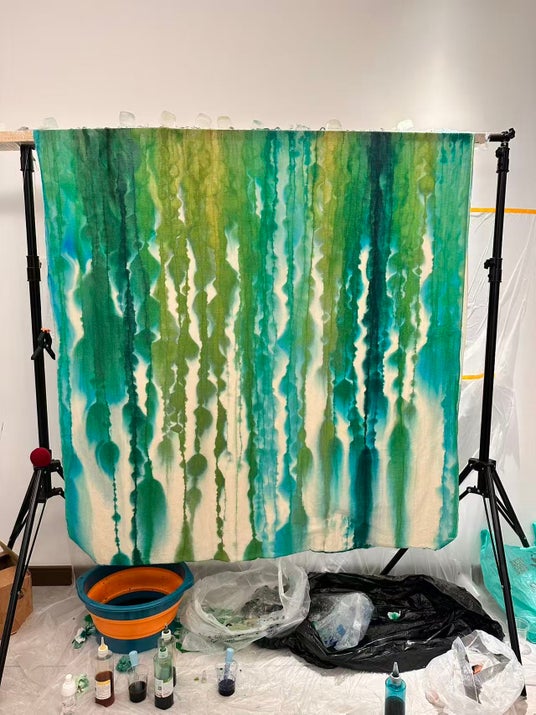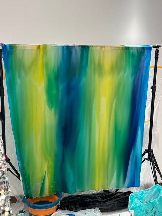衣装は、シルク生地を各登場人物のイメージに合わせ染色。手染めによる風合いで、雄大な自然に溶け込むグラデーションに仕上げています。