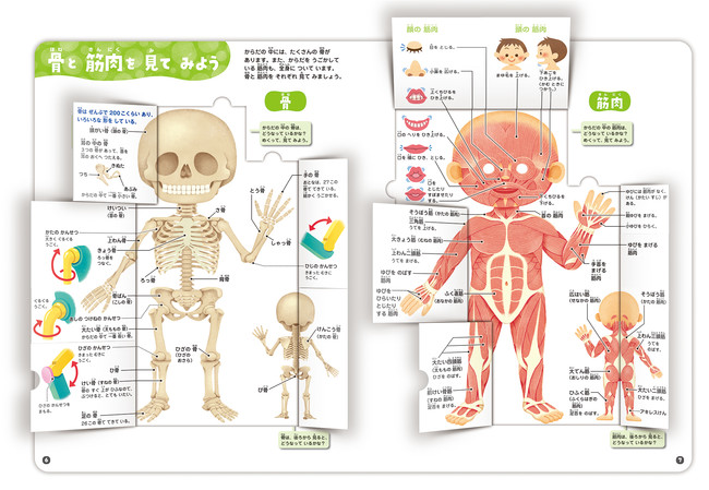 しかけをめくると、骨と筋肉、血管と心臓、目耳鼻口、消化器、神経、脳など、からだの中のようすがわかる、しかけ絵本図鑑です。それぞれの器官の構造や役割と、ウイルスや細菌についても、わかりやすく解説。人体のしくみを理解し、疑問に思っていたことが解決することで、もっと知りたいという知的欲求が高まり、「理系脳」が育ちます。累計30万部超の大人気「めくって学べる」シリーズ、プレゼントにも大好評です!