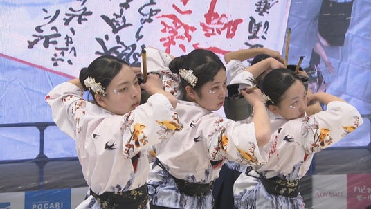 また、第2・3回大会で準優勝した本庄東高等学校は、激しいダンスを披露しながら、全身墨汁まみれになって書道パフォーマンスを展開。さらに京都市立開建高等学校は、傘を小道具に用い、7分間の演技の中に男女が恋に落ちる芝居を盛り込むなど、独創的な演出を見せつけました。