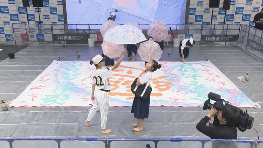 番組の見どころは、各高校が繰り広げる個性あふれるパフォーマンス。それぞれが型にはまらない表現で、書を完成させていきます。
