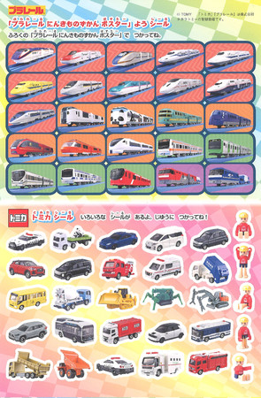 トミカ、プラレールのシールが55枚も! プラレールのシールは、付録のポスターに貼るとかっこいい図鑑が完成します。