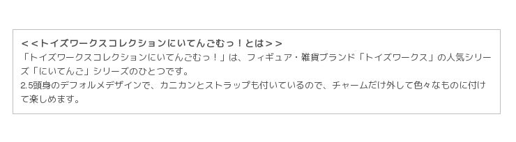 この商品では、主にアニメに登場したキャラクター9種類を選び、にいてんごデザインに可愛くデフォルメしました。