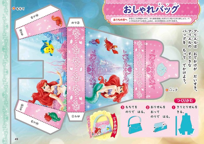 ミッキー、ミニーやアナと雪の女王などのディズニーの人気キャラクターと一緒に、はさみやのりで楽しく工作できます。