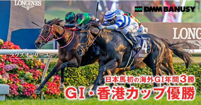 合同会社DMM.com(本社:東京都港区、会長 兼 CEO 亀山敬司、以下DMM)のグループ会社である、株式会社DMM.com証券(本社:東京都中央区、代表取締役 谷川龍二)が提供する競走用馬ファンド『DMMバヌーシー』の所属馬であるラヴズオンリーユー(牝5・栗東・矢作芳人厩舎)が12月12日(日)の香港・シャティン競馬場で行われた、GI・香港カップにおいて勝利を挙げたことをお知らせいたします。
