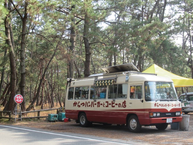 「からつバーガー 松原本店」は、店のシンボルであるレトロなバスでハンバーガーなどを販売しており、唐津湾に面した松林の中(虹の松原)県道347号沿いの敷地内にあります。スタッフが真心をこめて作るハンバーガーは、昔ながらのおいしさがあり、子どもから大人まで楽しめる味です。また、バンズと具材はオーダー後に焼き上げており、頬張るごとに「パリッとふわっと」した食感を堪能できます。