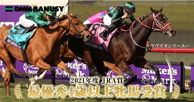 合同会社DMM.com(本社:東京都港区、会長 兼 CEO 亀山敬司、以下DMM)のグループ会社である、株式会社 DMM.com 証券(本社:東京都中央区、代表取締役 谷川龍二)が提供する競走用馬ファンド『DMM バヌーシー』の所属馬であるラヴズオンリーユー(牝 6・栗東・矢作芳人厩舎)が 2021 年度 JRA 賞「最優秀 4 歳以上牝馬」を受賞いたしましたので、お知らせいたします。