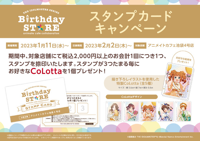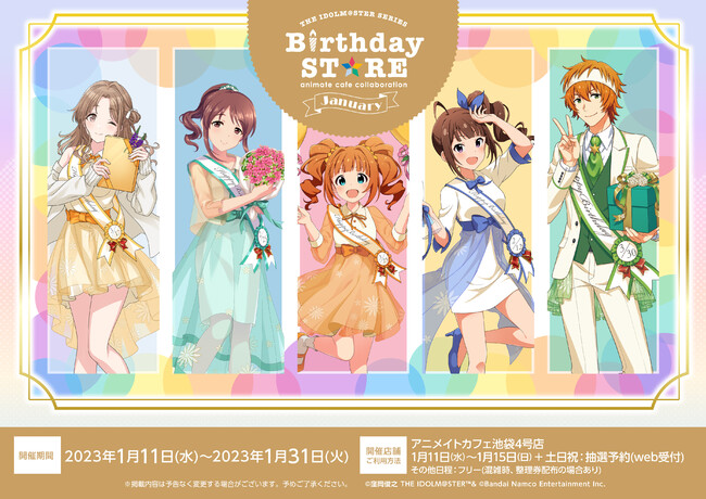 2023年1月11日(水)~1月31日(火)は1月に誕生日を迎えるアイドル達をお祝いする「THE IDOLM@STER SERIES Birthday STORE~January~」をオープンいたします。