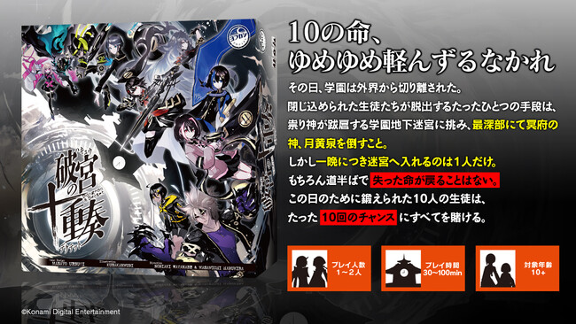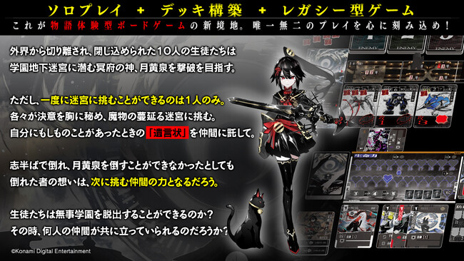 『破宮のデクテット』は、「ソロプレイ可能+デッキ構築+レガシー要素あり」という先鋭的ゲームシステムで、歯ごたえ抜群のダンジョン攻略ゲーム。2022年10月29日(土)、30日(日)に開催した国内最大規模のアナログゲームイベント「ゲームマーケット2022秋」では先行発売分が即時完売となった話題作です。