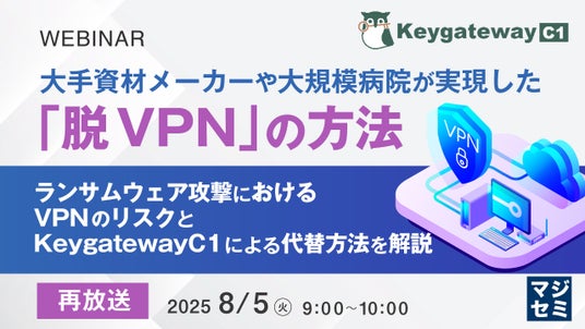 本セミナーでは、ゼロトラスト接続サービス「KeygatewayC1」を活用して実際に「脱VPN」を実現している事例をご紹介します。