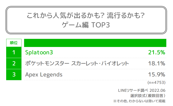 ・2022年下半期に人気が出ると思うものについて※、『ゲーム編』では「Splatoon3」が全体1位となった。