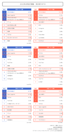 LINEでは、同社が保有する約604万人*の国内最大級のアクティブな調査パネルを基盤とした、 スマートフォン専用のリサーチプラットフォーム「LINEリサーチ」を運営しております。LINEリサーチでは、全国の15~24歳の若年層の男女を対象に、四半期ごとに最近の流行についてアンケート調査(自由記述形式)を実施しております。2022年上半期は3月、6月の2回の調査と、2022年下半期の流行予測に関する調査を実施いたしましたので、その調査結果をお知らせいたします。