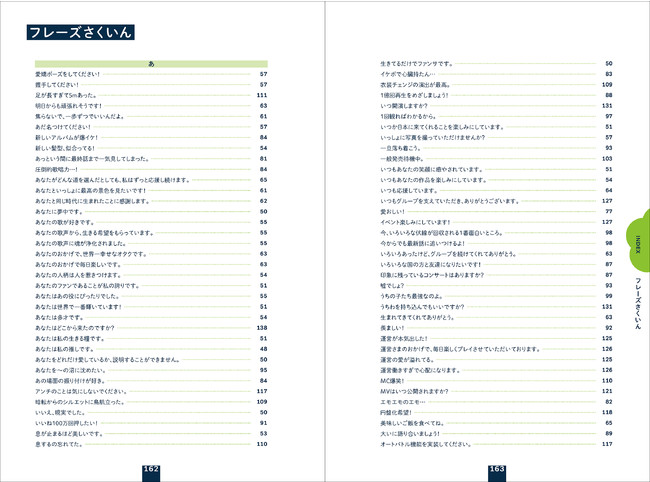 ・後ろの方にフレーズ索引があるんやけど、そのフレーズ見てるだけでもう信頼しかない。推し前にしたオタクが口走ることガン盛りやん…
