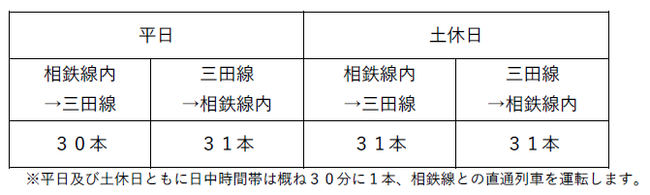 【三田線⇔相鉄線との直通本数(1日あたり)】