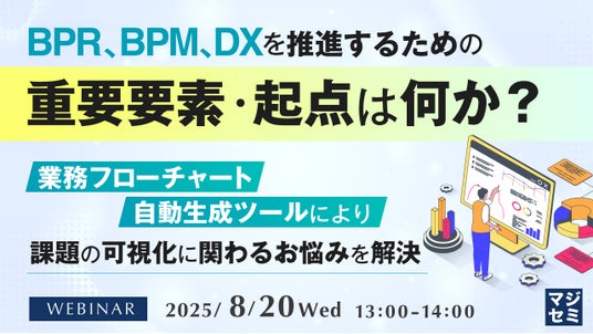 マジセミ株式会社は「BPR、BPM、DXを推進するための重要要素・起点は何か?」というテーマのウェビナーを開催します。