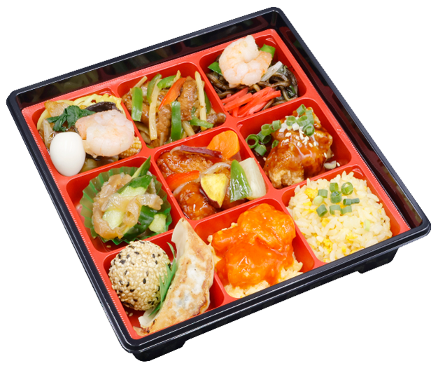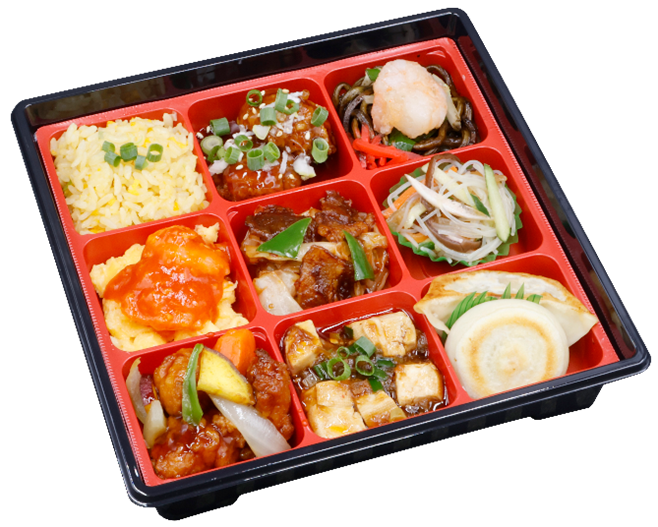 1.ガッツリ弁当食べChina★ 2.みんなで東村山しっチャイナ弁当 各1,380円(税込)