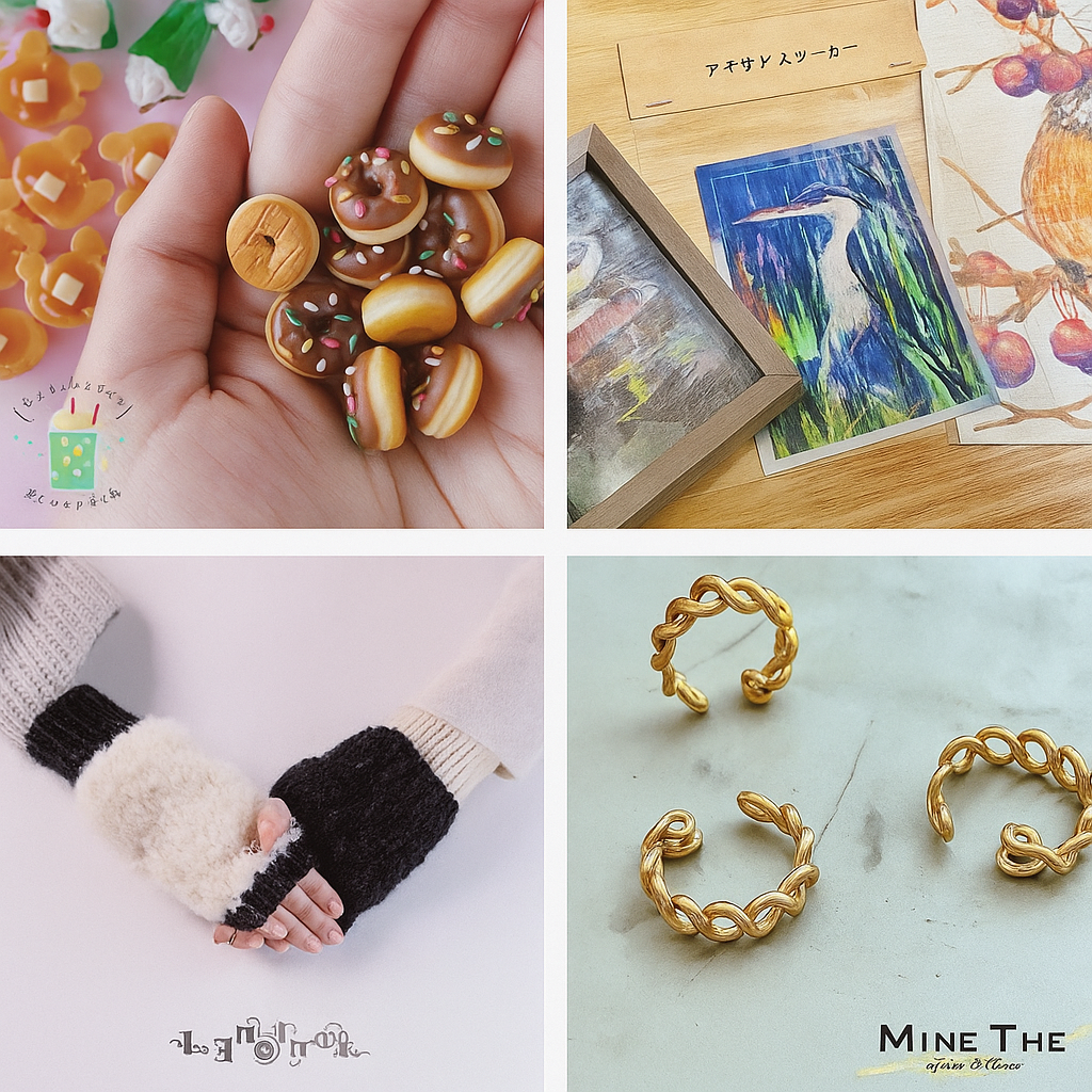 個性あふれるアクセサリーや雑貨、インテリア小物など、心ときめく作品がずらりと並びます。一つひとつ丁寧につくられた作品には、作家の想いとぬくもりが詰まっています。世界にたった一つの“あなただけのお気に入り”を探しに、ぜひ遊びに来てください。会場いっぱいに広がる彩りと手づくりの魅力に、きっとワクワクが止まりません!