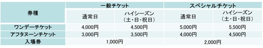 <ワンデーチケット>平日:5,000円/土日祝5,500円