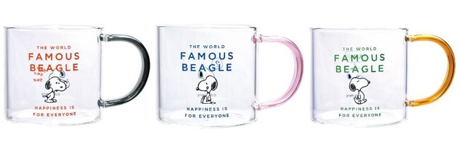 【PEANUTS】耐熱ガラスマグ(レッド/ブルー/グリーン) 各2,200 円(税込)