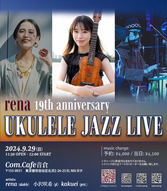 『rena 19th anniversary UKULELE JAZZ LIVE』が開催できることを嬉しく思います。