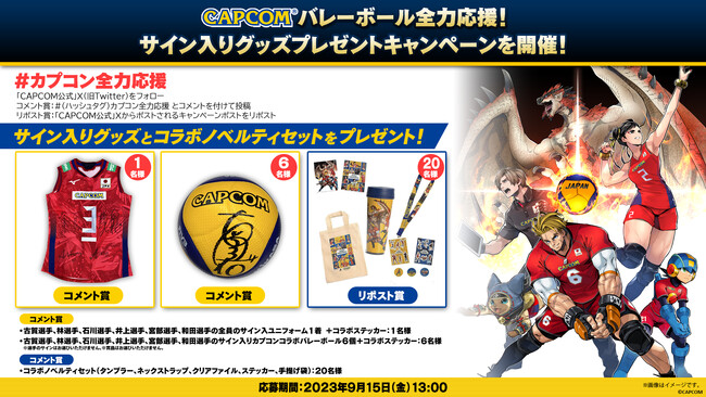 バレーボール女子日本代表選手のサイン入りグッズをプレゼントするキャンペーンを「CAPCOM公式」X(旧Twitter)にて開催します。