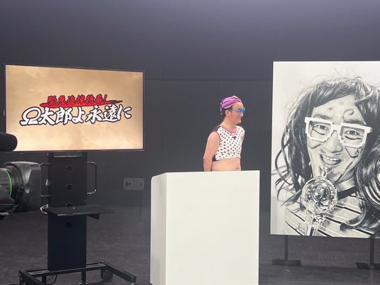 Ω太郎との思い出話もそこそこに、まずは『Ω太郎の人生プレイバック」のコーナーに入り、0~31歳の前編、そして33~94歳の後編にわけて、映像でΩ太郎の人生を振り返っていきます。森下演じるΩ太郎があれやこれやと形を変えて登場するこのVTR、細部にわたって作り込まれているので必見です!