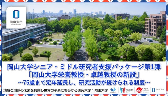 国立大学法人岡山大学(本部:岡山市北区、学長:那須保友)は2026年4月17日に開催した定例記者発表(学長発表)において、「岡山大学シニア・ミドル研究者支援パッケージ第1弾『岡山大学栄誉教授・卓越教授の新設』~75歳まで定年延長し、研究活動が続けられる制度~」を公表しました。