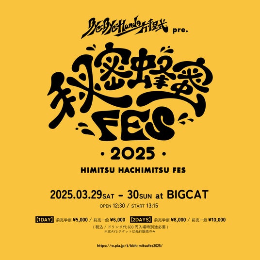 今年で2回目となる『秘密蜂蜜フェス』は、バイハンのメンバーが地元・大阪をはじめ、全国各地凌ぎを削ってきた盟友バンドやアーティストたちが集結する一大イベント。
