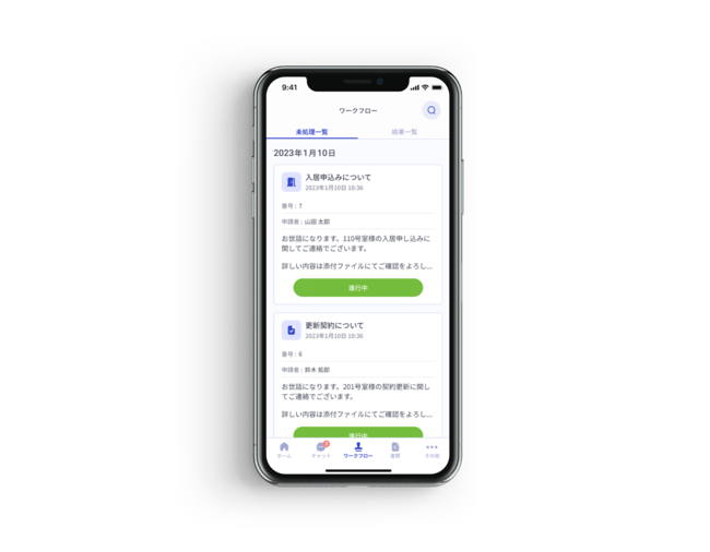 ▲新しくなったオーナーアプリのワークフロー一覧画面