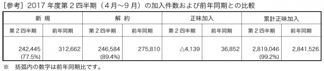 2017 年9 月の加入・解約と月末時点の加入件数につきまして、以下の通りお知らせします。