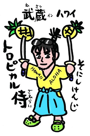 大好きな「宮本武蔵」と「ハワイ」をミックスしたギャグ漫画で、とても楽しんで描いた大好きな作品です。