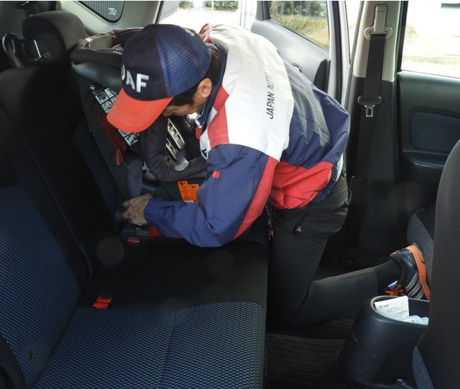 このイベントは、チャイルドシート指導員の認定を受けたJAF職員が、参加者のチャイルドシートの取り付け状況をチェックし、ご自身で正しく取り付けられるようにアドバイスを行います。