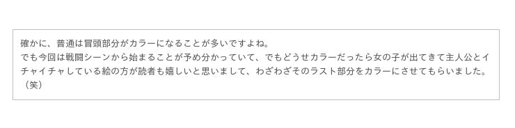 作品の扉や冒頭ページがカラーになることが通例ですが、今回はクライマックスシーンがカラーで描かれています。その理由を作者の赤松先生に聞いてみました!