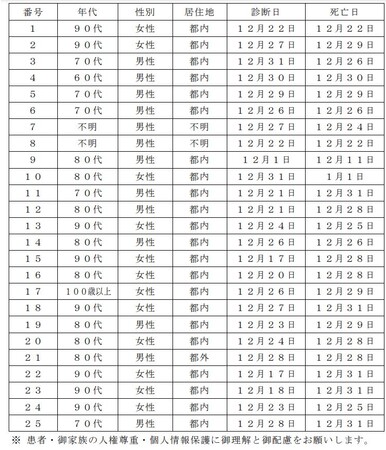 都内で新型コロナウイルスに感染した方が死亡されましたのでお知らせします。