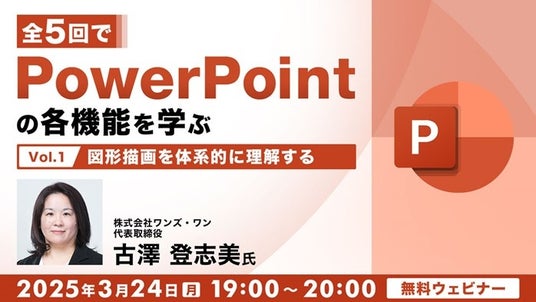 株式会社クリーク・アンド・リバー社(C&R社)は3月24日(月)、イチからPowerPoint(PPT)を学びたい方や企画書やプレゼン資料を作成している方を対象に、無料のオンラインセミナー「全5回でPowerPointの各機能を学ぶ(1) 図形描画を体系的に理解する」を開催します。