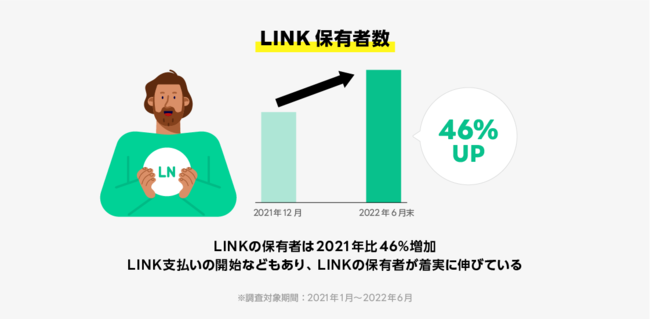 2018年にLINEの独自暗号資産「LINK」が初めて市場に流通して以降、LINKに関連したさまざまな取り組みを進めてまいりました。2022年2月には、LINE Payの支払いに利用できる機能「LINK支払い」を試験的に提供するなど、日常で「LINK」が使える環境を広げ、日本におけるLINKの保有者数は2021年比46%増加しています。