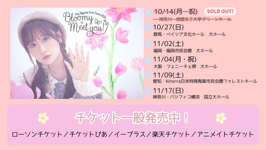 いよいよ始まった「小倉 唯 LIVE TOUR 2024 ~Bloomy × Meet you!~」は、10月27日(日)・群馬公演、11月2日(土)・福岡公演、11月4日(月・祝)・大阪公演、11月9日(土)・愛知公演、11月17日(日)・神奈川公演と続くので、各会場でどんなパフォーマンスを披露してくれるのか、期待せずにはいられない。