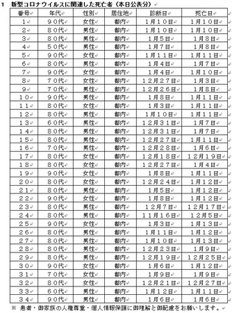 都内で新型コロナウイルスに感染した方が死亡されましたのでお知らせします。