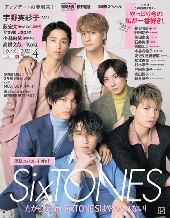 この冬、さらに勢いを加速させているSixTONESがwith4月号「通常版」(2月26日発売)表紙&カバーストーリーに登場! 本日ついに、磨きのかかった6人の輝きとオーラを感じる表紙ビジュアルを解禁いたしました。