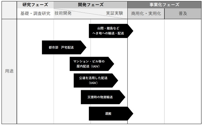 ■「山間・離島などへき地への輸送・配送」、「運搬」は商用化・実用化フェーズへ