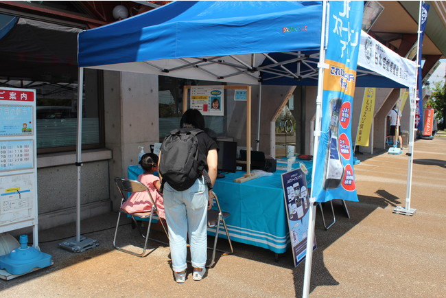 JAFブースで「子ども安全免許証」の発行を無料で体験することができます。「子ども安全免許証」とは交通ルールに関するクイズ(〇×問題)に答えるともらえる顔写真入りの免許証型のカードです。