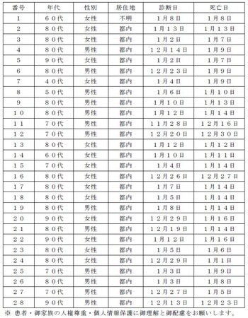 都内で新型コロナウイルスに感染した方が死亡されましたのでお知らせします。
