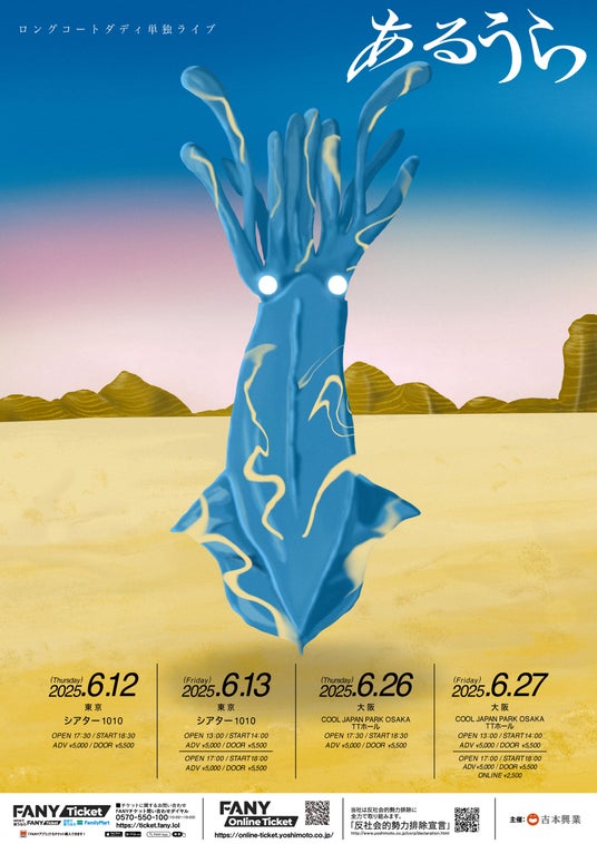 この度、ロングコートダディの単独ライブ「あるうら」の開催が決定しました。6月12日(木)~6月13日(金)東京公演3公演と、6月26日(木)~6月27日(金)大阪公演3公演の全6公演の開催となります。