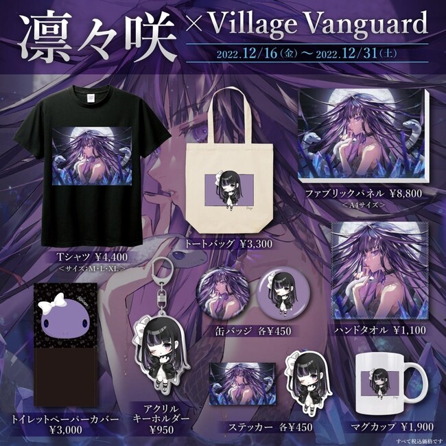 2022年12月16日(金)より、バーチャルシンガーソングライター【凛々咲】さんとヴィレッジヴァンガード限定コラボグッズがオンラインストアで完全受注販売決定!!